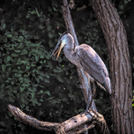 Great Blue Herons are a cool bird to observe. This one was napping in a tree. I captured it as it was yawning.