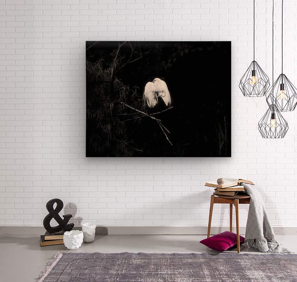 While visiting the beach just before sunset I saw great egrets flying into the woods. I knew there was a pond there so I walked there and saw several egrets sitting in the trees. This pair captured my attention since they were the only 2 to be sitting together. There was very little sun shining through the trees so I was able to get the dark background.